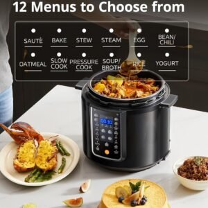 หม้ออัดแรงดันอเนกประสงค์ 9 in 1: ใช้งานได้หลากหลาย ทั้งหม้ออัดแรงดัน หม้อตุ๋นไฟฟ้า หม้อหุงข้าว หม้อนึ่ง หม้อผัด เครื่องทำโยเกิร์ต เครื่องทำเค้ก เครื่องทำไข่ และเครื่องอุ่นอาหาร