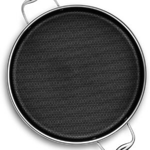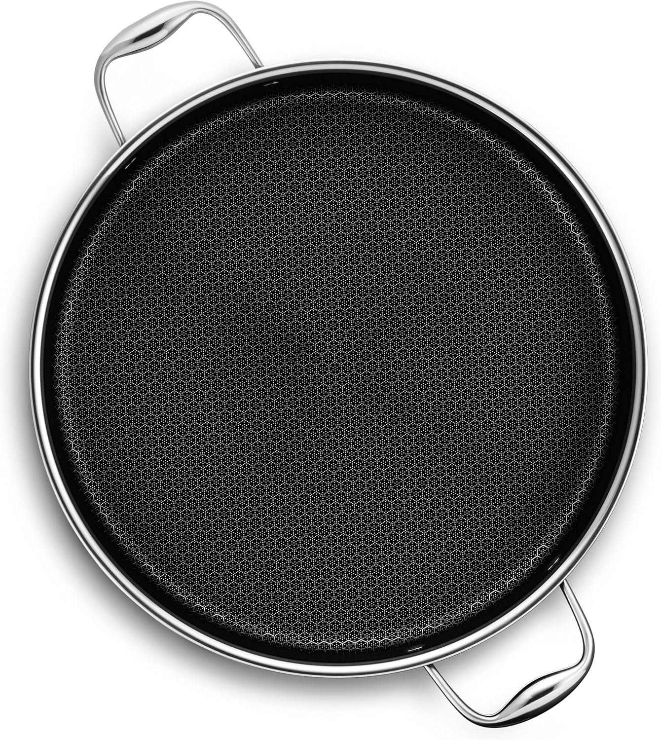 เทคโนโลยี Hybrid ที่ได้รับสิทธิบัตรของ HexClad โดดเด่นด้วยพื้นผิวเคลือบสารกันติดหกเหลี่ยมที่แกะสลักด้วยเลเซอร์ ซึ่งผสานรวมสเตนเลสสตีลและสารเคลือบเซรามิก TerraBond ของเรา เพื่อการย่างที่เหนือชั้นและทำความสะอาดง่าย