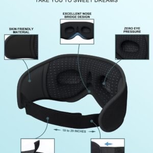 คุณสมบัติพิเศษ: ผ้าปิดตาบลูทูธ รูปทรง 3 มิติ, หูฟังเชื่อมต่อไร้สาย Bluetooth 5.4, ผ้าเย็นสบายและป้องกันแสงได้อย่างสมบูรณ์แบบ, เสียงสเตอริโอ HD และอายุการใช้งานแบตเตอรี่ที่ยาวนาน, ผ้าปิดตานอนหลับพร้อมหูฟังบลูทูธ ผ้าปิดตาบลูทูธ รูปทรง 3 มิติ, หูฟังเชื่อมต่อไร้สาย Bluetooth 5.4, ผ้าเย็นสบายและป้องกันแสงได้อย่างสมบูรณ์แบบ, เสียงสเตอริโอ HD และอายุการใช้งานแบตเตอรี่ที่ยาวนาน