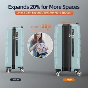 【ชุดกระเป๋าเดินทาง 3 ชิ้น 20″ 24″ 28″ — ตัวเลือกที่ดีที่สุดสำหรับการเดินทาง】ชุดกระเป๋าเดินทางน้ำหนักเบา 3 ชิ้น มีให้เลือก 3 ขนาด สำหรับการเดินทางที่หลากหลาย: 20″ (38x23x55 ซม. – 2.72 กก. – 33 ลิตร), 24″ (45x27x67 ซม. – 3.74 กก. – 63 ลิตร), 28″ (50x31x77 ซม. – 4.58 กก. – 93 ลิตร) สามารถขยายได้เฉพาะขนาด 24″ และ 28″ เท่านั้นเพื่อเพิ่มพื้นที่ได้ 20% ขนาด 20 นิ้ว เหมาะกับกระเป๋าเดินทางขึ้นเครื่องของสายการบินส่วนใหญ่