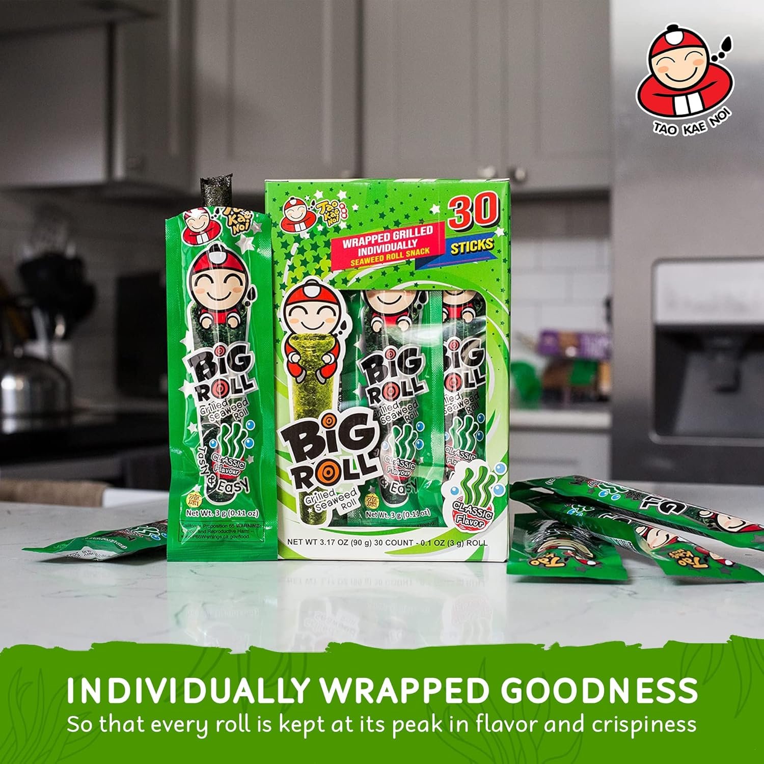 ไม่ว่าคุณจะไปโรงเรียนหรือที่ทำงาน พกขนมไปด้วย! โรลสาหร่ายย่างของ Tao Kae Noi เป็นขนมสนุก ๆ ที่รอคอยในแต่ละวัน เพื่อความสะดวก โรลสาหร่ายของเราห่อแยกชิ้นอย่างดี เพื่อรักษารสชาติและความกรอบจนถึงเวลาทาน