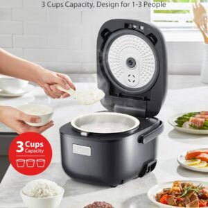 หม้อหุงข้าว TOSHIBA ขนาดเล็ก 3 ถ้วย หุงสุก – หน้าจอ LCD พร้อมฟังก์ชันการหุง 8 แบบ: ข้าว, ข้าวโอ๊ต, ธัญพืชรวม และอื่นๆ หม้อชั้นในเคลือบสารกันติด สีเทา