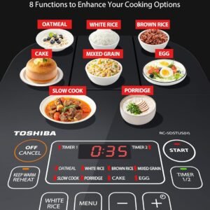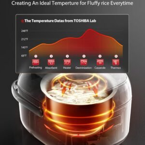 หม้อหุงข้าวอัจฉริยะ – หม้อหุงข้าว TOSHIBA จะตรวจจับความชื้นในข้าวและปรับอุณหภูมิและเวลาในการหุงให้เหมาะสม เพื่อให้ได้ข้าวที่สุกนุ่มอย่างสมบูรณ์แบบทุกครั้ง นอกจากนี้ยังสามารถหุงข้าวและอาหารจานอื่นๆ ได้อย่างสมบูรณ์แบบด้วยการปรับพารามิเตอร์การหุงให้เหมาะกับความต้องการเฉพาะของอาหาร