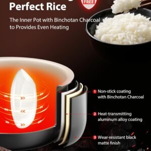 หม้อชั้นในหนาพิเศษ – หม้อหุงข้าวขนาดเล็กนี้มีหม้อชั้นในหนาพิเศษ 3 มม. ซึ่งทนทานต่อการสึกหรอยิ่งขึ้น พร้อมวัสดุคาร์บอน Binchotan ที่ช่วยกระจายความร้อนขณะหุง ทำให้ข้าวฟูนุ่มยิ่งขึ้น