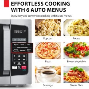 TOSHIBA ML-EM09PA(SS) เตาไมโครเวฟขนาดเล็กพร้อมเมนูอัตโนมัติ 6 รายการ ฟังก์ชันปิดเสียงและล็อกเด็ก ไฟ LED เหมาะสำหรับอพาร์ทเมนท์และหอพัก ความจุ 0.9 ลูกบาศก์ฟุต จานหมุนแบบถอดได้ขนาด 10.6 นิ้ว กำลังไฟ 900 วัตต์ สเตนเลสสตีล
